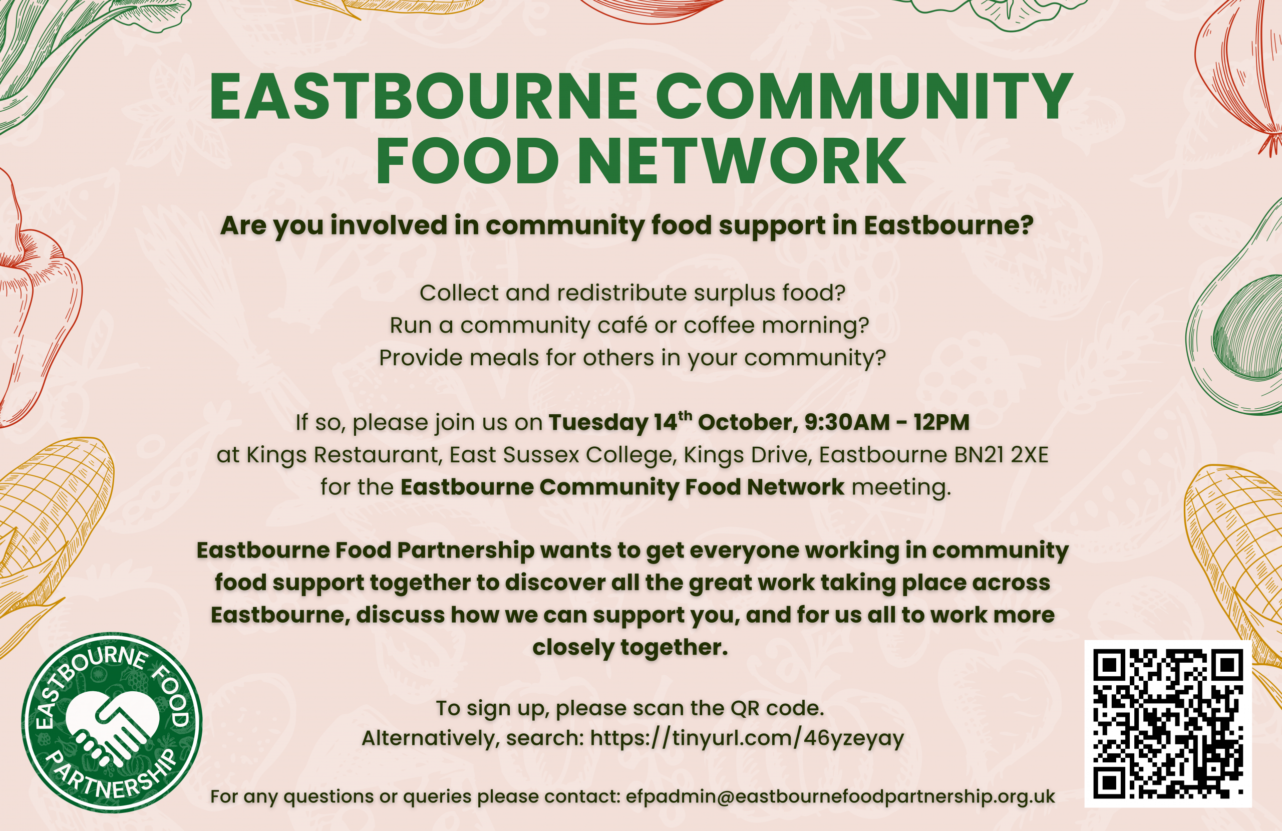 Kings Restaurant Kings Drive, Eastbourne, East Sussex, United KingdomThe Eastbourne Food Partnership will be hosting the first Community Food Network, bringing everyone together who is involved in community food support in Eastbourne. If you are involved in Community Food Support, please consider signing up.